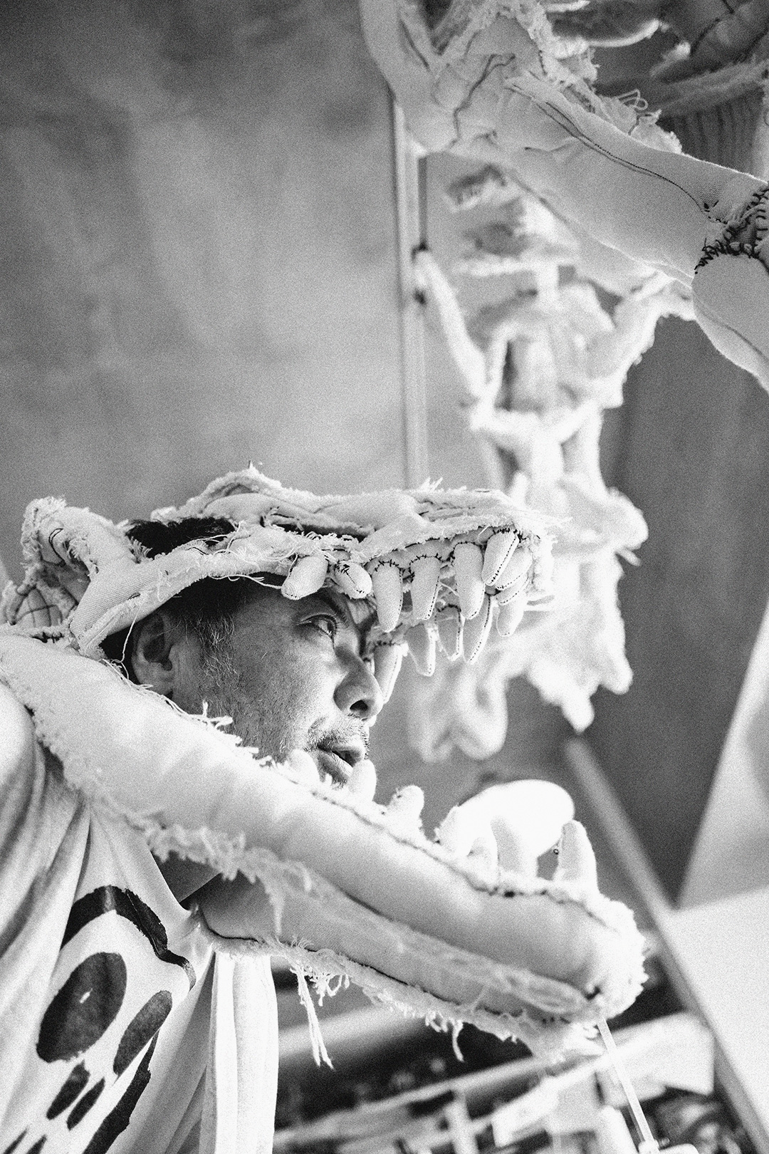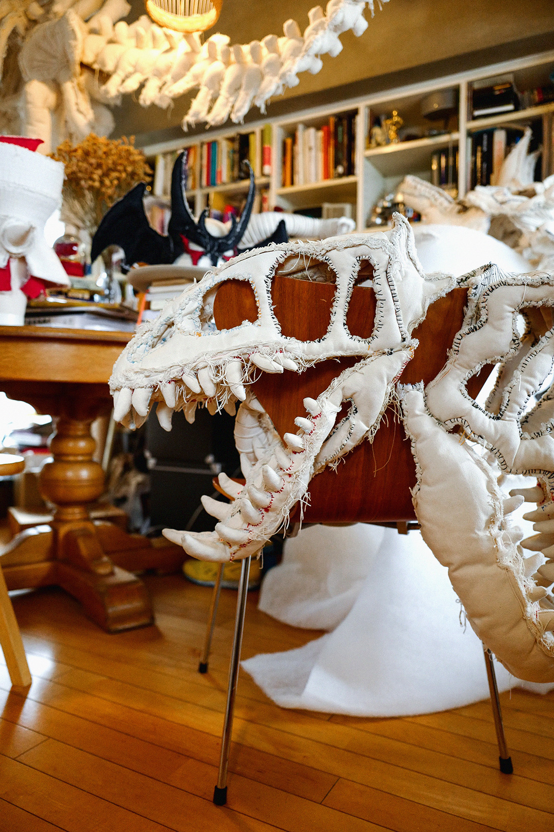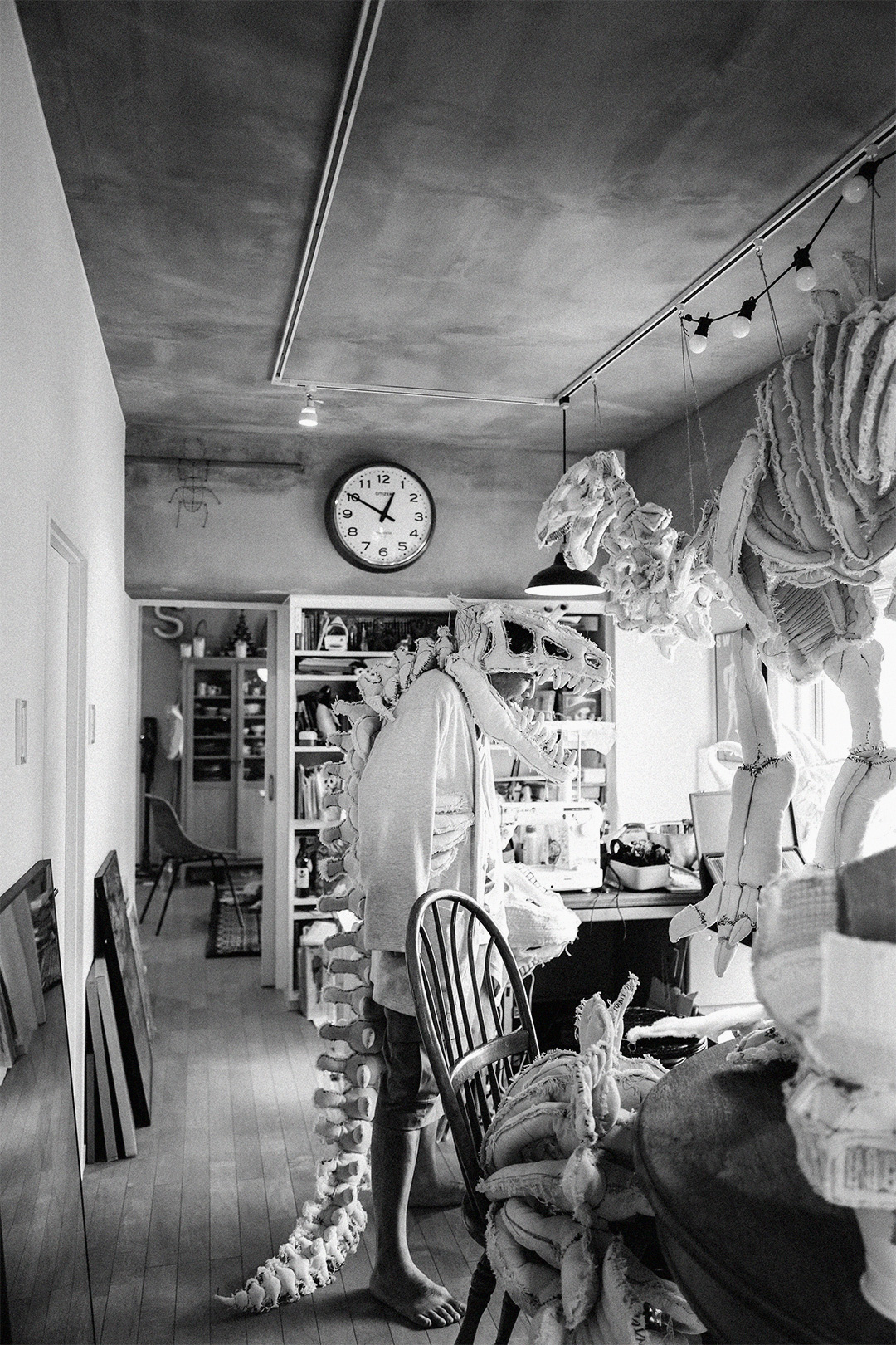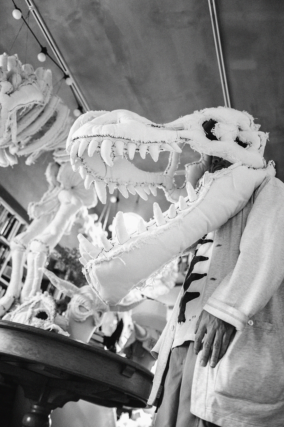 Masakatsu Shimoda was born in the Hyogo prefecture in 1967. From a young age, the artist has always enjoyed drawing and believes that all he needs for a fulfilling life is a set of colored pencils and a sewing machine. In 2011, Shimoda San visited an anthropology museum and saw dinosaur skeletons for the first time, which made a strong impression on him. After viewing the exhibit, he couldn't find any souvenirs at the museum shop that matched his new interests at all. Upon returning home empty-handed, Masakatsu Shimoda decided to embark on a project related to dinosaurs.